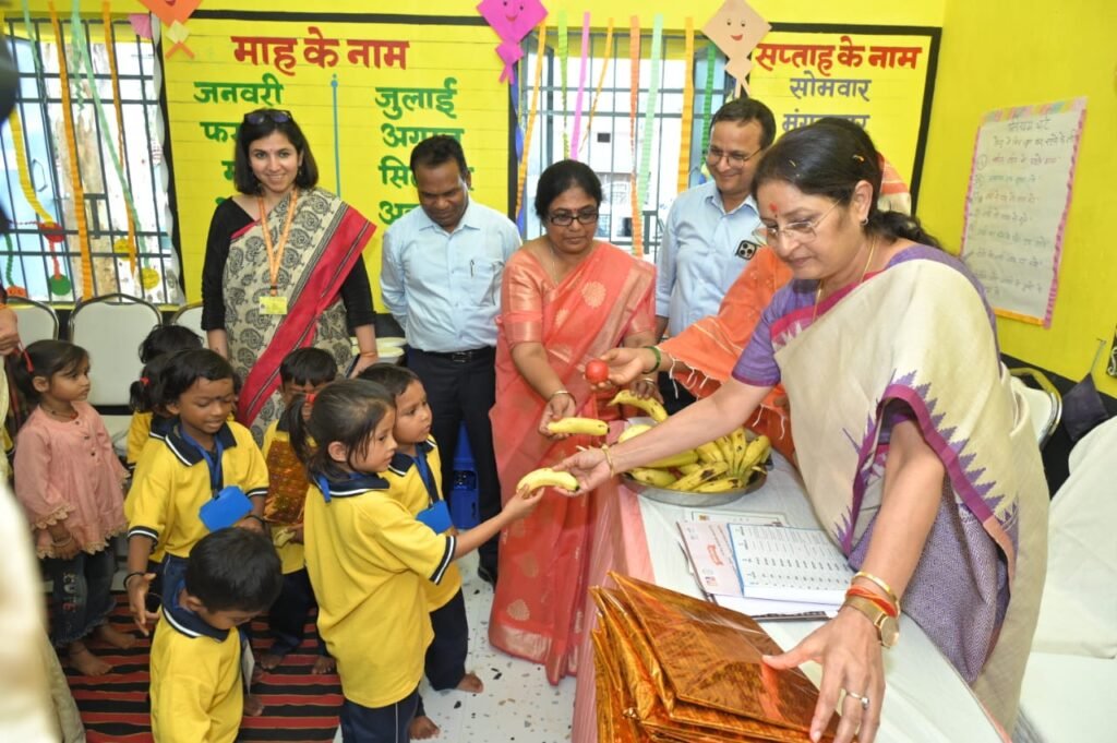 रायपुर (वनांचल न्यूज) | राजधानी रायपुर प्रवास के दौरान केन्द्रीय महिला एवं बाल विकास मंत्री श्रीमती अन्नपूर्णा देवी ने आज निमोरा स्थित मॉडल आंगनबाड़ी केन्द्र-1 का अवलोकन किया। इस दौरान उन्होंने केन्द्र में पंजीकृत बच्चों से आत्मीय मुलाकात की, उन्हें गोद में उठाकर दुलारा और उनके लिए संचालित गतिविधियों एवं सुविधाओं का बारीकी से जायजा लिया।*आंगनबाड़ी केन्द्रों की भूमिका की सराहना*केन्द्रीय मंत्री श्रीमती अन्नपूर्णा देवी ने कहा कि मुख्यमंत्री श्री विष्णु देव साय ने नेतृत्व में छत्तीसगढ़ सरकार द्वारा आंगनबाड़ी केन्द्रों के माध्यम से बच्चों के पोषण, शिक्षा और संपूर्ण विकास के लिए जो प्रयास किए जा रहे हैं, वे अन्य राज्यों के लिए भी अनुकरणीय हैं। उन्होंने बताया कि आंगनबाड़ी केन्द्रों में ईसीसीई (Early Childhood Care and Education) गतिविधियों के अंतर्गत न केवल बच्चों को पौष्टिक आहार उपलब्ध कराया जा रहा है, बल्कि उन्हें खेल-खेल में शिक्षा भी दी जा रही है। इससे बच्चों की बौद्धिक, सामाजिक और शारीरिक वृद्धि में महत्वपूर्ण योगदान मिल रहा है।