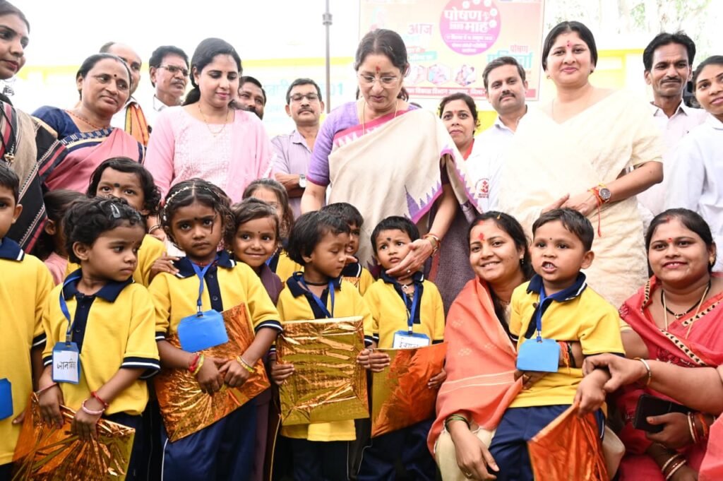 कार्यक्रम के दौरान बच्चों ने बाल-गीत प्रस्तुत किए, जिसे सुनकर केन्द्रीय मंत्री ने बच्चों की प्रतिभा की प्रशंसा की। उन्होंने बच्चों को फल एवं उपहार प्रदान किए। केन्द्रीय मंत्री ने स्वस्थ बालक-बालिका प्रतियोगिता और पौष्टिक व्यंजन प्रतियोगिता के विजेताओं को भी सम्मानित किया गया।केन्द्रीय मंत्री श्रीमती अन्नपूर्णा देवी ने आंगनबाड़ी परिसर में अमरूद, मुनगा, जामुन और आम के पौधे लगाकर हरित वातावरण और पोषण सुरक्षा का संदेश भी दिया। उन्होंने कहा कि पौधरोपण न केवल पर्यावरण की रक्षा करता है बल्कि बच्चों को ताजगी भरा माहौल भी प्रदान करता है।इस अवसर पर छत्तीसगढ़ की महिला एवं बाल विकास मंत्री श्रीमती लक्ष्मी राजवाड़े, राज्य बाल संरक्षण आयोग की अध्यक्ष डॉ. वर्णिका शर्मा, केन्द्रीय महिला एवं बाल विकास विभाग के अतिरिक्त सचिव श्री लव अग्रवाल, छत्तीसगढ़ शासन की सचिव श्रीमती शम्मी आबिदी, विभागीय संचालक पी.एस. एल्मा, रायपुर कलेक्टर डॉ. गौरव सिंह सहित महिला एवं बाल विकास विभाग के अधिकारी-कर्मचारी बड़ी संख्या में उपस्थित रहे।