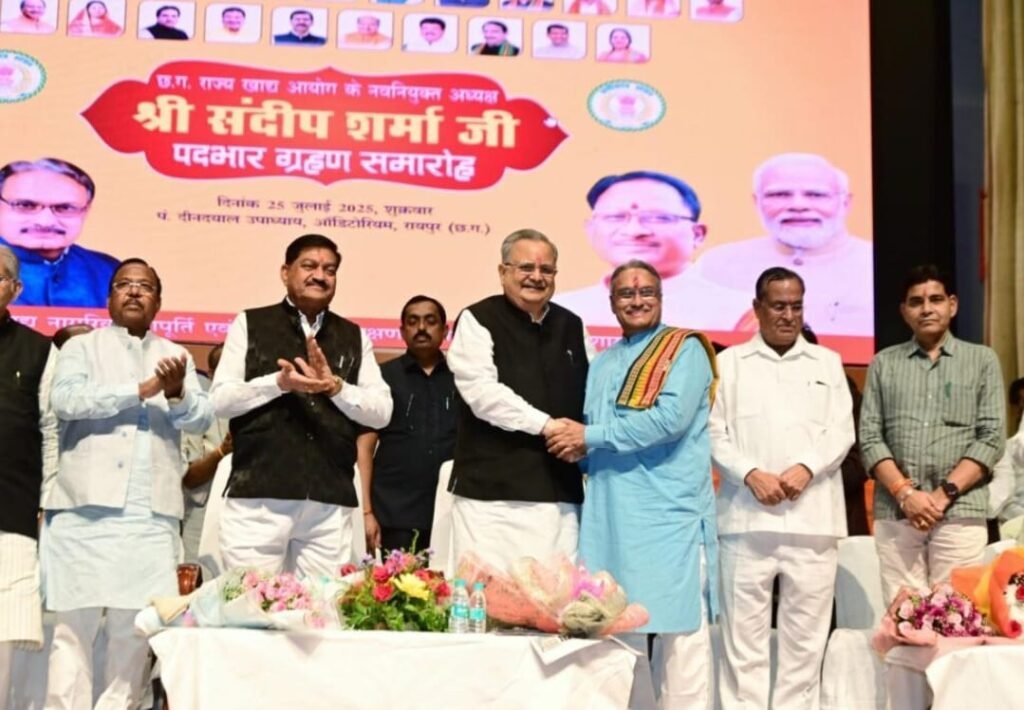 छत्तीसगढ़ राज्य खाद्य आयोग के नवनियुक्त अध्यक्ष संदीप शर्मा ने कहा कि भारतीय खाद्य सुरक्षा अधिनियम के अंतर्गत खाद्य आयोग का गठन किया गया है। प्रधानमंत्री नरेंद्र मोदी और मुख्यमंत्री विष्णुदेव साय के नेतृत्व वाली भाजपा सरकार में लोगों को संवैधानिक अधिकार दिए हैं। हमारे अनेक मूलभूत अधिकारों में भोजन का अधिकार भी एक अधिकार है। देश में कोई भी व्यक्ति भूखा न रहे, कोई भी व्यक्ति रात में बिना भोजन के न सोए, इसकी चिंता प्रधानमंत्री श्री मोदी के नेतृत्व वाली भाजपा सरकार ने की है। कोरोना काल में लोगों के भोजन के लिए अनाज की व्यवस्था की गई। कोरोना कल समाप्त होने के बाद भी केंद्र सरकार की यह योजना निरंतर चल रही है। श्री शर्मा ने कहा कि हमारी सरकार गरीबों की चिंता करने वाली सरकार है। प्रदेश में निरंतर अनाज उत्पादन बढ़े, इसके लिए लगातार सरकार ने किसानों के लिए काम किया। जिस समय हमारे प्रदेश में अनाज का उत्पादन निरंतर बढ़ा, उसके पीछे रमन सिंह की सरकार ने बहुत काम किया। आज किसानों को उनके अनाज का उचित मूल्य मिल रहा है। धान का पैसा एकमुश्त मिल रहा है। 13 हजार करोड रुपए प्रतिवर्ष प्रदेश सरकार किसानों को दे रही है जिसकी वजह से खाद्यान्न उत्पादन तेजी से बढ़ रहा है।